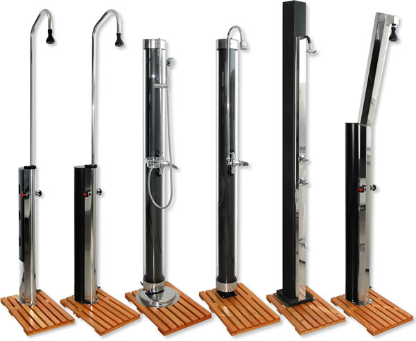 Docce solari autonome sono disegnate soprattutto per le piscine esterne e sono una soluzione ottima per tutti che desiderate avere la possibilità di fare una doccia accanto alla piscina. Non serve nessun collegamento speciale per l’installazione di doccia solare. Viene semplicemente portata sul posto desiderato vicino alla piscina e collegata su un tubo da giardino o su tubo PVC dell’acquedotto. Il tubo può essere quello che usate per annaffiare (per esempio Gardena), e lo collegate su un rubinetto. La doccia si può fissare su un piatto di legno, cosi la potete spostare a volontà e anche staccare e mettere da parte fino a prossimo uso. Il pregio delle docce solari e che sono dotate di un serbatoio d’acqua che permette il riscaldamento d’acqua sfruttando l’energia solare. Cosi l’acqua calda per fare doccia è garantita. Alcuni modelli sono dotati con serbatoio addizionalmente rivestito con il vetro che ancora aumenta il rendimento di riscaldamento solare.Alcuni modelli dalla nostra offerta: