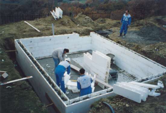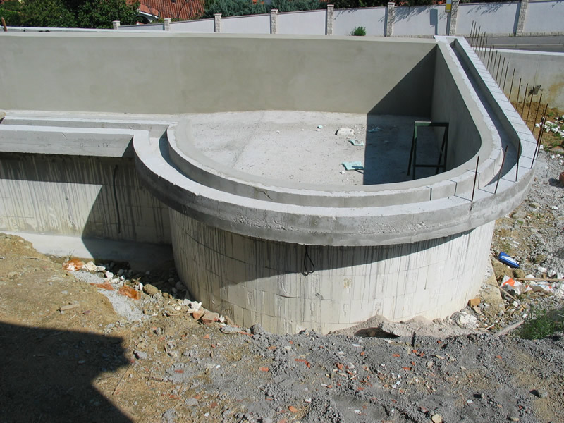 La costruzione di piscina con mattoni STIROPOOL permette la realizzazione di piscine di diverse forme e dimensioni, con tondeggi, scalinate, lagune di bassofondo e simili.