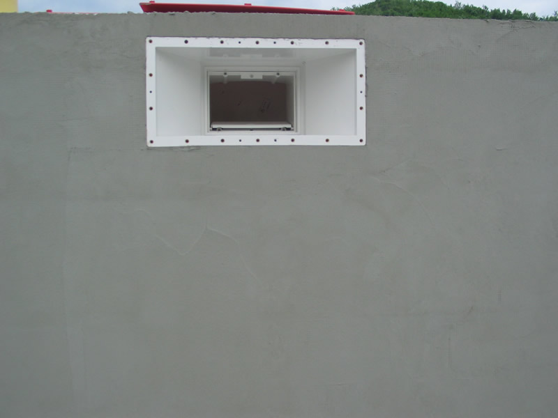 Il locale tecnico può essere realizzato con mattoni normali o in cemento armato; importante è l'impermeabilizzazione per evitare umidità all'interno. In alcuni casi si può installare anche un locale tecnico prefabbricato in poliestere.