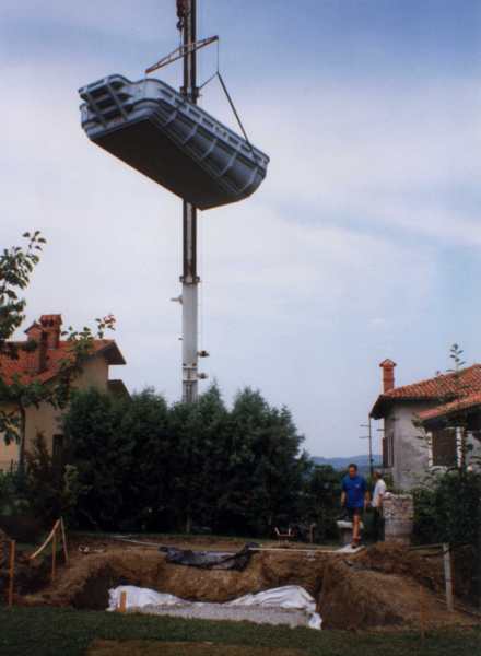 posizionamento della piscina nello scavo occorre a volte l'aiuto di un'autogrù.