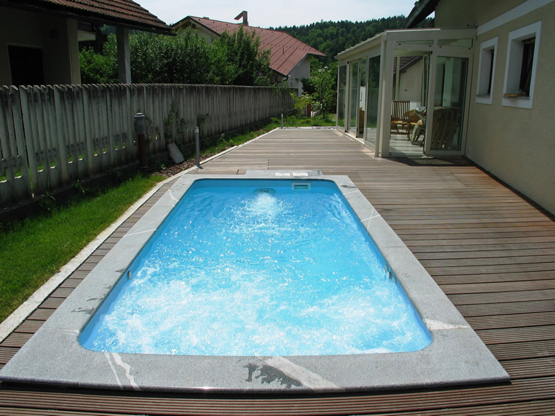 In modo simile si possono acquistare anche altre piscine in poliestere (oltre 100 diversi modelli) ed equipaggiare con la tecnica delle piscine a scelta. Con le piscine in poliestere, per l'installazione del depuratore molto spesso si usa il locale tecnico prefabbricato in poliestere. Il locale tecnico prefabbricato si può acquistare anche con il depuratore scelto già installato. In questo modo si semplifica l'installazione che cosi comprende solo il collegamento delle tubazioni tra la piscina e il locale tecnico. |