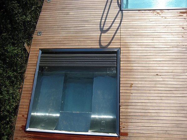 Apertura della tapparella su piscina idromassaggio in Inox - Wirhlpool (interrata):