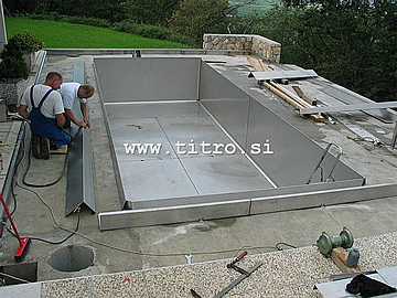 Inox bazen je možno tudi v celoti sestaviti in zvariti kar na gradbišču in sicer v že pripravljeno konstrukcijo, ki je lahko zidana ali betonska (ali pa obstoječ dotrajan bazen).